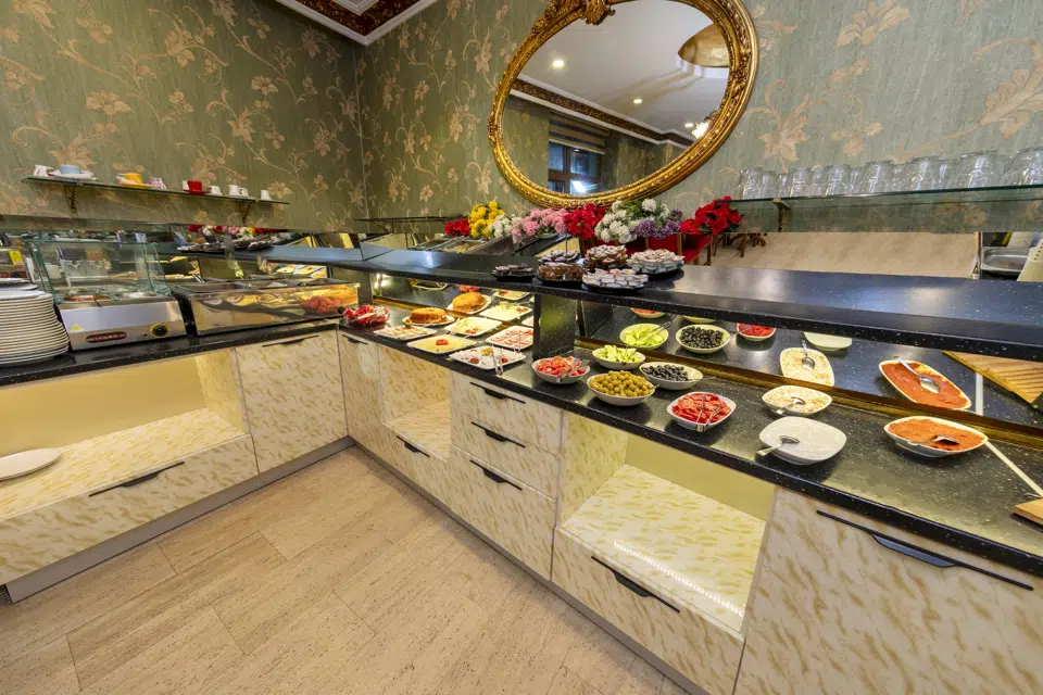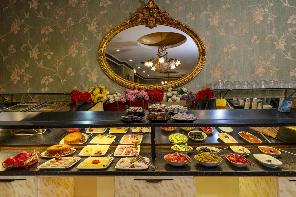 Restoranımız 50 kişilik kapasitesiyle, rezervasyona gerek kalmadan keyifle ağırlıyor. Nil Hotel'de her sabah, zengin menümüzden oluşan açık büfe kahvaltının tadını çıkarın!